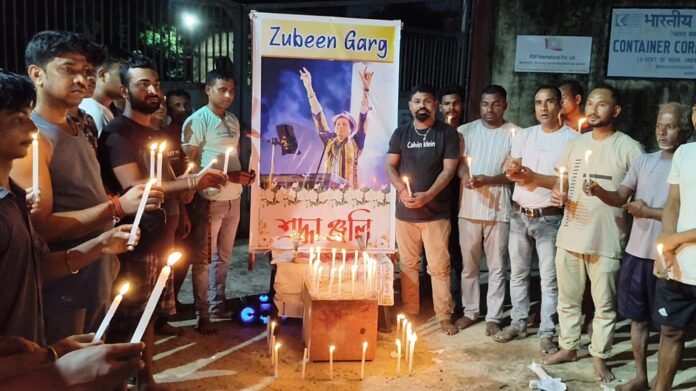 বোধজঙনগর শিল্প নগরীতে আসামের শ্রমিকদের উদ্যোগে শিল্পী জুবিন গর্গকে শ্রদ্ধাঞ্জলি।