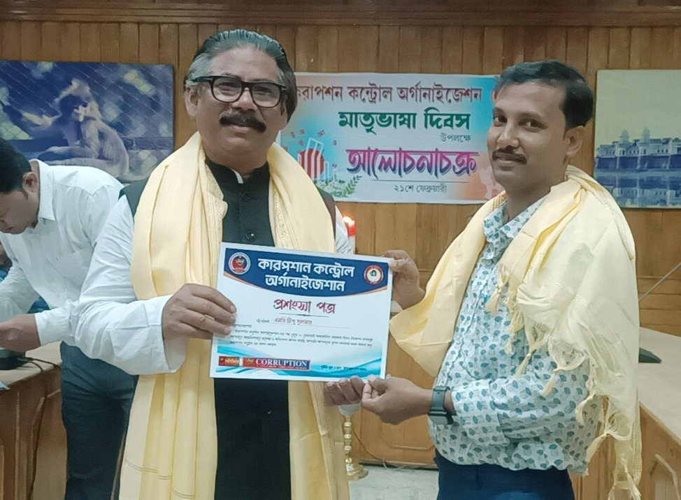 বুধবার ২১ ফেব্রুয়ারি মাতৃভাষা দিবস উপলক্ষে এক ব্যতিক্রমী অনুষ্ঠানের আয়োজন করল করাপশন কন্ট্রোল অর্গানাইজেশনের ত্রিপুরা শাখা। করাপশন কন্ট্রোল অর্গানাইজেশনের উদ্যোগে এদিন দেশ-বিদেশের গুরুত্বপূর্ণ সংবাদ গুলো যারা সহজ সরল ভাষায় সমাজের প্রতিটি স্তরের মানুষের কাছে তুলে ধরেন সেই সাংবাদিকদের সম্মান জানানো হয় । আগরতলার বীরচন্দ্র লাইব্রেরির কনফারেন্স হলে আয়োজিত আলোচনা চক্র এবং সাংবাদিক সম্মাননা অনুষ্ঠানে প্রধান অতিথি হিসেবে উপস্থিত ছিলেন বাংলাদেশ থেকে আগত যুবলীগ নেতা তথা “বঙ্গবন্ধু বাংলাদেশ”হিসেবে বহুল পরিচিত জিল্লুর রহমান আলমগীর। অনুষ্ঠানে উপস্থিত ছিলেন রাজ্য প্রশাসনের আধিকারিক জে রিয়াং। উপস্থিত ছিলেন করাপশন কন্ট্রোল অর্গানাইজেশনের চেয়ারম্যান জদু মনি দেব এবং রাজ্য সম্পাদক সুকান্ত দে। এই অনুষ্ঠানে ত্রিপুরা রাজ্যের বিভিন্ন সংবাদপত্র, ইলেকট্রনিক মিডিয়া এবং ওয়েব মিডিয়ার মোট ১০ জন সাংবাদিক প্রতিনিধিকে ভাষা দিবস উপলক্ষে বিশেষ সম্মান এবং মানপত্র তুলে দেওয়া হয়। সম্মানিত সাংবাদিকদের মধ্যে রয়েছেন দীপক দে, রাজীব দত্ত, চন্দ্রিমা সরকার,সমিরন মজুমদার, মোহাম্মদ টিপু সুলতান, কুন্তল গোস্বামী, সমরেশ দে,গৌতম ঘোষ, মৃণাল দেবনাথ, বিশ্বজিৎ দেবনাথ ,কিংকর বণিক , বিষ্ণুপদ বণিক।
