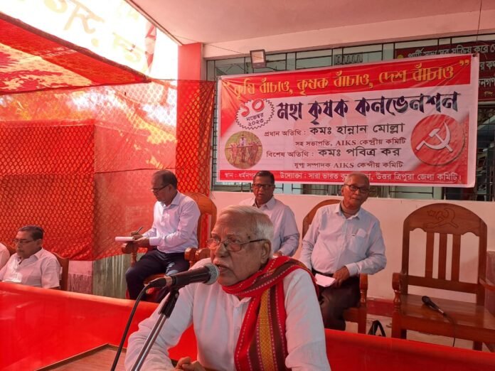 তিনি বলেন ৯২-৯৩ সাল থেকে নব উদার নীতিতে ভারতীয় কৃষি ও কৃষক সমস্যায় পড়েছিল।আর নরেন্দ্র মোদী সরকারে এসেই সংকটে ফেলে দিয়েছে।তিনি বলেন মোদি সরকারের এই কৃষকদের প্রতি বিশ্বাসঘাতকতার জবাব দিতে সংযুক্ত কিষান মোর্চা আবার বৃহৎ আন্দোলনে যাচ্ছে।তার প্রাথমিক পদক্ষেপ হিসেবে আগামী ২৬ থেকে ২৮ নভেম্বর দেশের প্রত্যেকটি রাজ্যের রাজভবন তিন দিনের জন্য ঘেরাও হবে ,আগরতলাতেও হবে । হান্নান মোল্লা বলেন কৃষকরা অন্নদাতা।তাঁরা কি চেয়েছিলেন?চেয়েছিলেন একটা সুস্থ ও সুষ্ঠু কৃষি নীতি।আর নরেন্দ্র মোদি চাইছেন কৃষক তাঁর নিজের জমি করপোরেটদের হাতে তুলে দিয়ে কৃষক করপোরেটদের ক্রীতদাস হয়ে যাক।সেটা কৃষক সভা ও সংযুক্ত কিষান মোর্চা মেনে নেবে না।হান্নান মোল্লা বলেন ১৪ সালে ৩০০টি সভায় বক্তৃতা করে স্বামীনাথনের সুপারিশ মেনে কৃষকদের ন্যুনতম সহায়ক মূল্য দেয়ার কথা ঘোষণা করলেও প্রধানমন্ত্রী হয়ে সব ভুলে গেছেন।উল্টে সুপ্রিম কোর্টে হলফনামা দিয়ে তাঁর সরকার বলেছেন ন্যুনতম সহায়ক মূল্য দেয়া সম্ভব নয়।তিনি বলেন দেশের কৃষকদের কাছে তিনি বিশ্বাসঘাতক হিসেবে চিহ্নিত হয়েছেন,বিদেশে সরকারী সফরে গিয়ে আদানিদের হয়ে কথা বলে যাচ্ছেন।আদানিরা যখন দেখেছেন শিল্পে তেমন এগিয়ে যাওয়া যাবে না তখন কৃষির ২৫ লাখ কোটি টাকার দিকে হাত বাড়িয়েছেন।সহায়তা করে যাচ্ছেন মোদী সরকার।এই সরকার খাদ্য নিরাপত্তা আইনকে বৃদ্ধাঙ্গুলি দেখিয়ে রেশনিং ব্যবস্থা তুলে দিয়ে করপোরেটদের সুবিধা করে দিতে চাইছে বলে হান্নান মোল্লা অভিযোগ করেন।তিনি বলেন কৃষক আন্দোলনের সময়ে যে লিখিত প্রতিশ্রুতি দিয়ে ছিলেন আজ দু বছর ধরে মোদী সরকার তা রক্ষা করেন নি।তিনি বলেন আর রেয়াত করা হবে না। নভেম্বরের তিনদিনের কর্মসূচি পালন করে ডিসেম্বর থেকে রাজ্যে রাজ্যে কৃষক আন্দোলন সংগঠিত হবে ।এবার আন্দোলন শুধু দিল্লি ভিত্তিক হবে না।তিনি বলেন মোদি সরকার এমন নির্লজ্জ যে কোভিডের সময়ে অন্নদাতারা কোভিডের সাথে লড়াই করে যখন ভারতবাসীদের খাবার জোগান দিয়েছে তখন মোদি কৃষকদের পুরস্কার দিয়েছেন তিন কালা কানুন এনে জমি কেড়ে নেবার চেষ্টা করে।হত দেয়নি সংযুক্ত কিষান মোর্চা ।হান্নান মোল্লা বলেন এরপর সংযুক্ত কিষান মোর্চা দেখাতে পেরেছে মোদী সরকারকে নতজানু করিয়ে।তিনি বলেন এরপর আবার বিশ্বাসঘাতকতা, ন্যুনতম সহায়ক মূল্য থেকে সব দাবি মেনে, লিখিত প্রতিশ্রুতি দিয়ে দু বছর ধরে তা রক্ষা করেন নি।এবার মোক্ষম জবাব দিতে প্রস্তুত সংযুক্ত কিষান মোর্চা বলে তিনি মন্তব্য করেন।