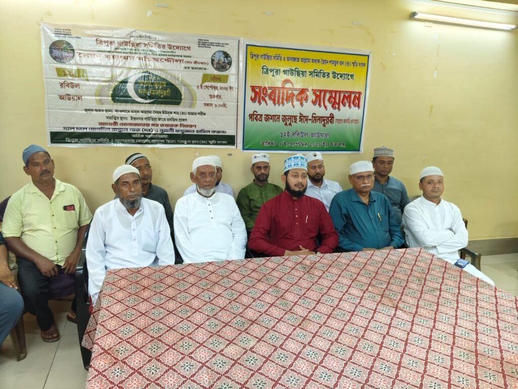 আগামী ৫ সেপ্টেম্বর ইসলামিক আরবি ১২ রবিউল আউয়াল বিশ্ব শান্তির দূত হিসেবে পরিচিত ইসলাম ধর্মের প্রবর্তক হযরত মুহাম্মদ সাল্লাল্লাহু আলাইহি ওয়াসাল্লাম এর জন্মদিন। দিনটিকে সামনে রেখে গোটা বিশ্বের ধর্মপ্রাণ মুসলিমরা আবেগে মেতে উঠেছেন। আমাদের রাজ্যেও নবীর জন্মদিনে বিভিন্ন ধরনের সামাজিক এবং মানবিক কর্মসূচির মধ্য দিয়ে দিনটি উদযাপনের প্রস্তুতি নিয়েছেন মুসলিমদের বিভিন্ন ধর্মীয় সামাজিক সংগঠন। প্রতি বছরের ন্যায় এবারো ১২ রবিউল আউয়াল নবীর জন্মদিন উপলক্ষে আগরতলা শহরে বর্ণাঢ্য ধর্মীয় শোভাযাত্রার আয়োজন করেছে ত্রিপুরার ইন্দ্রনগর স্থিত মুসলিম ধর্মীয় সামাজিক সংগঠন ত্রিপুরা গাউছিয়া সমিতি এবং আল্লামা সৈয়দ ইউসুফ শাহ মাজার শরীফ কমিটি। এই উপলক্ষে ৩ সেপ্টেম্বর বুধবার আগরতলা প্রেসক্লাবে একটি সাংবাদিক সম্মেলন করেন গাউছিয়া সমিতির প্রতিনিধিরা। সাংবাদিক সম্মেলনে উপস্থিত ছিলেন গাউছিয়া সমিতির সভাপতি আব্দুল বারিক চৌধুরী, সম্পাদক মোহাম্মদ জনাব আলী, ইন্দ্রনগর জামে মসজিদের ইমাম মোঃ নজরুল ইসলাম কাদেরী, অ্যাডভাইজারি কমিটির চেয়ারম্যান অ্যাডভোকেট লুৎফুর রহমান খাদীম, বিশিষ্ট সমাজসেবী মুফতি মুহাম্মদ সাহাবুদ্দিন, ভারতীয় বিমান বাহিনীর প্রাক্তন জোয়ান নিজাম উদ্দিন সহ অন্যরা।